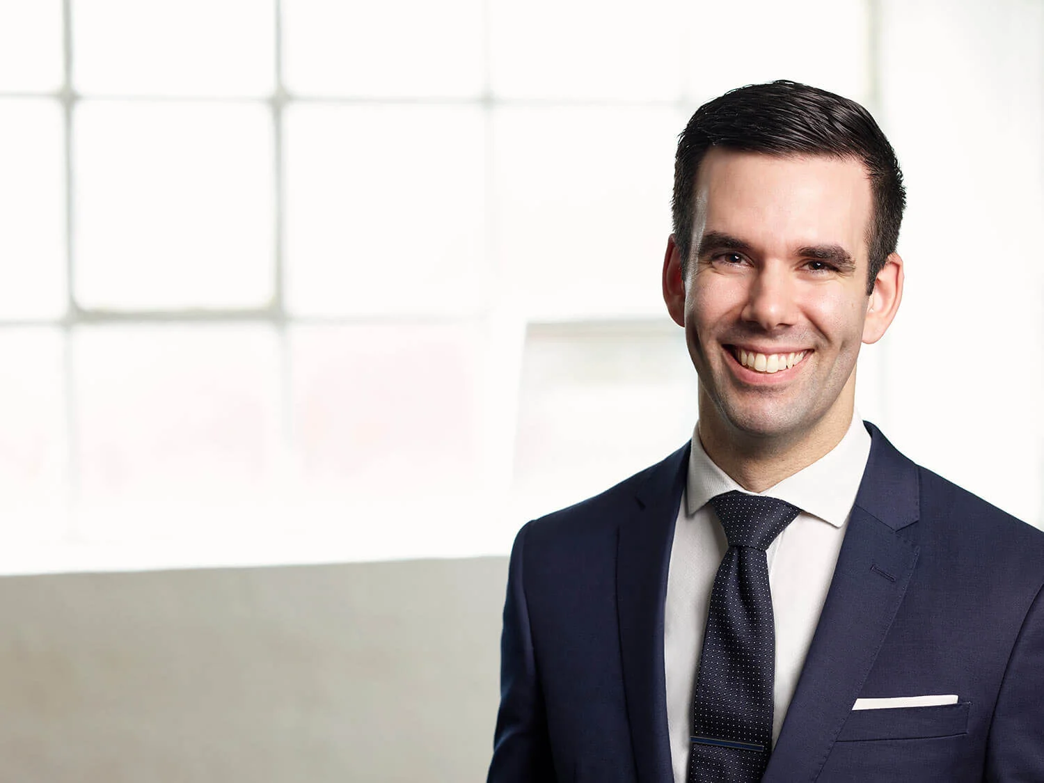 Fresh and bright headshots captured in our studio with warehouse windows as a background